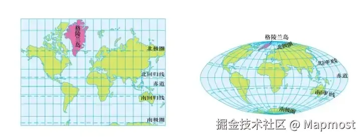 重投影过程中,地图的形状、面积和方向会发生变形。不同的投影方法会导致不同的变形类型和程度。例如,墨卡托投影在高纬度地区会产生严重的面积变形。