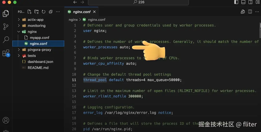 - 配置 Nginx 根据 CPU 核心数自动设置工作进程数量。由于 EC2 实例有 2 个 CPU,所以 Nginx 创建了 两个独立的工作进程(workers)。
