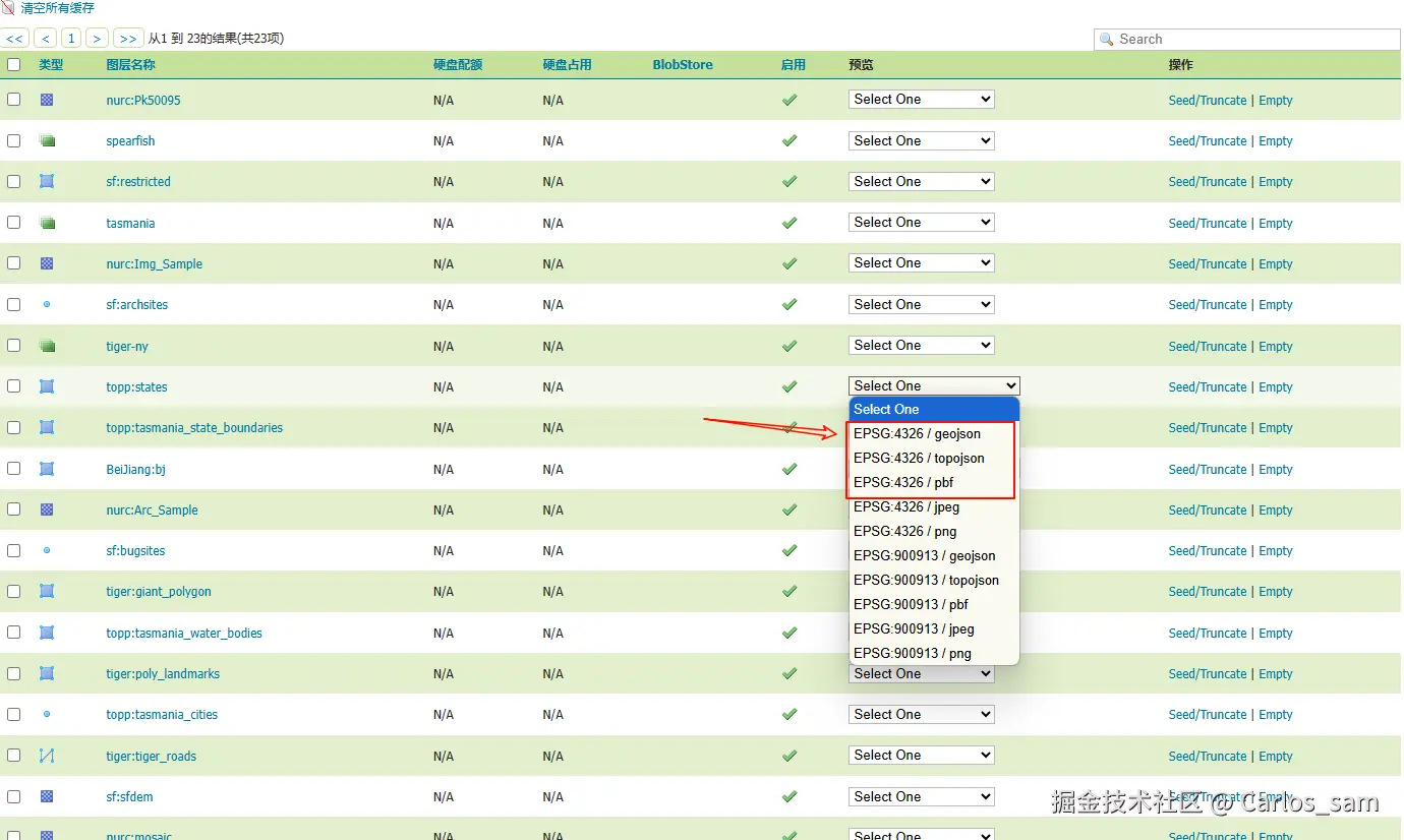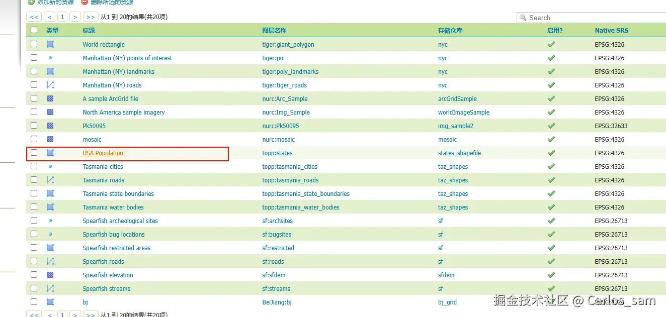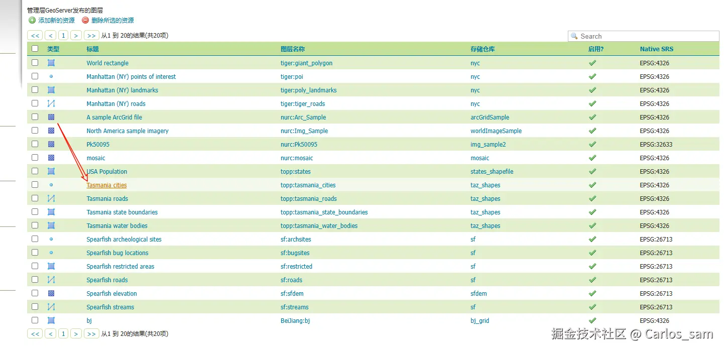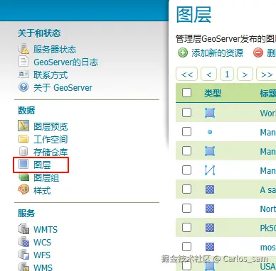 安装插件成功后重新启动GeoServer,然后打开GeoServer的图层页面