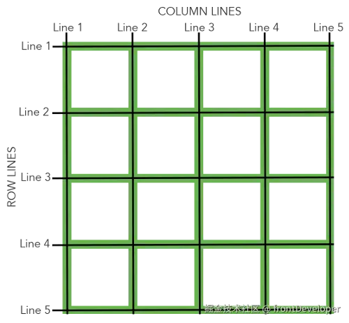 grid-row-start / grid-row-end 可以缩写成 grid-row: < start-line> / < end-line>;