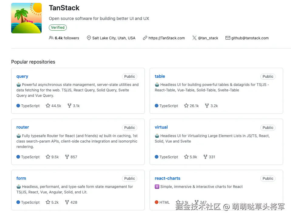 Github主页:github.com/TanStack