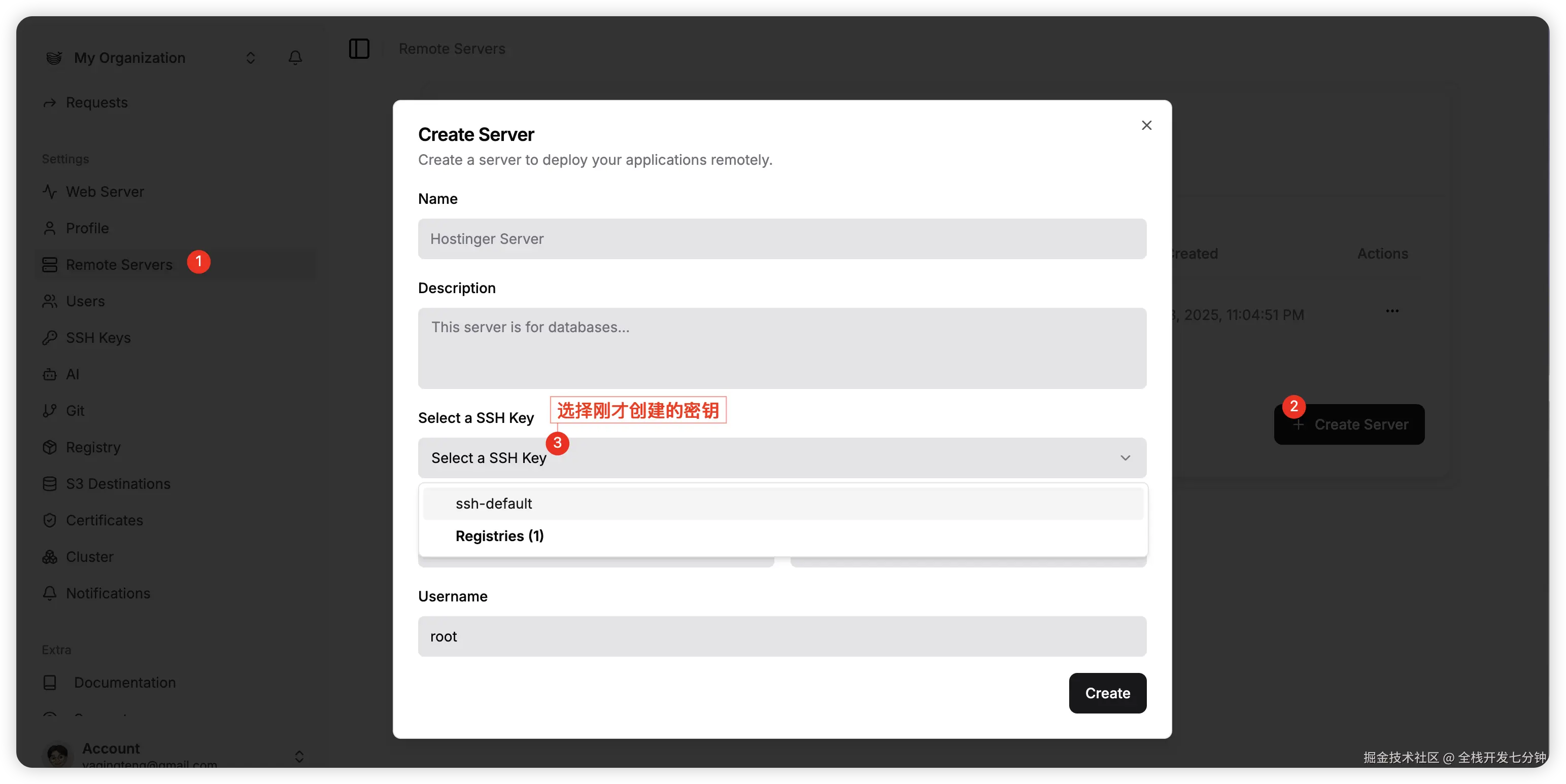 - 在 Dokploy 管理面板中添加远程服务器