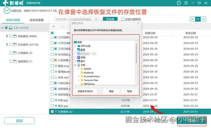 第3步:点击后在弹窗中选择存储恢复文件的位置。
