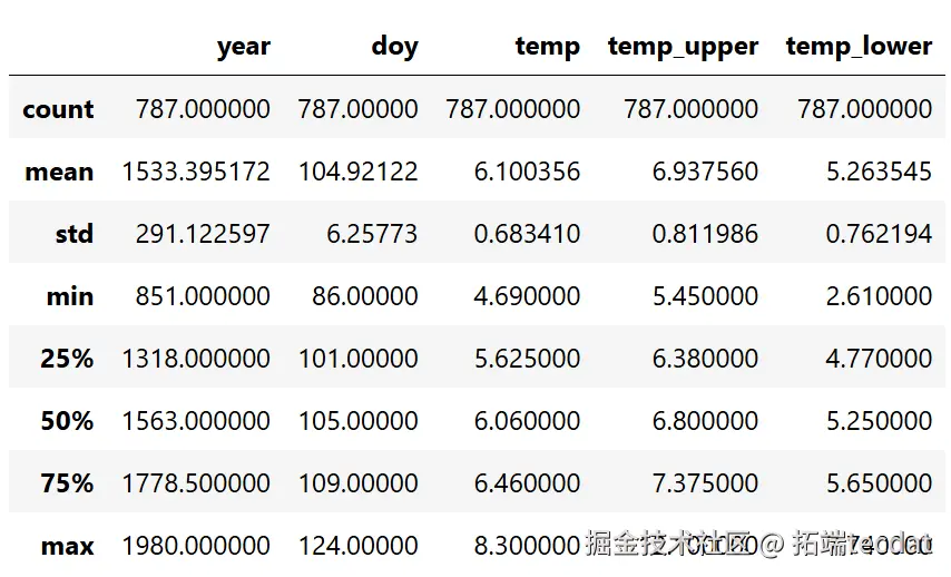 本专题合集涵盖了从数据的获取、清洗,到模型的构建、拟合,再到模型结果的分析和新数据预测等多个关键环节。数据方面,我们使用了记录每年樱花树开花天数(“一年中的天数”即doy)和年份(year)的樱花花期数据。在数据处理时,为了方便,我们剔除了缺失开花天数数据的年份(但一般来说,这并不是处理缺失数据的好方法)。