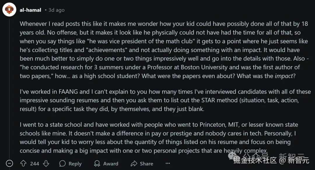 另一位曾在五大科技巨头 FAANG 工作的网友,第一反应是发出质疑:学习课程时间矛盾,一作科研含金量,甚至有种成就堆砌感。