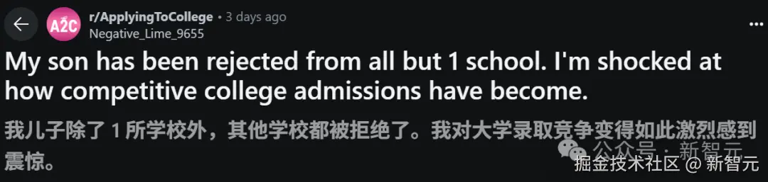 这篇帖子一经发布,迅速登上 Reddit 子板块 r/ApplyingToCollege 热门,在全网掀起轩然大波。