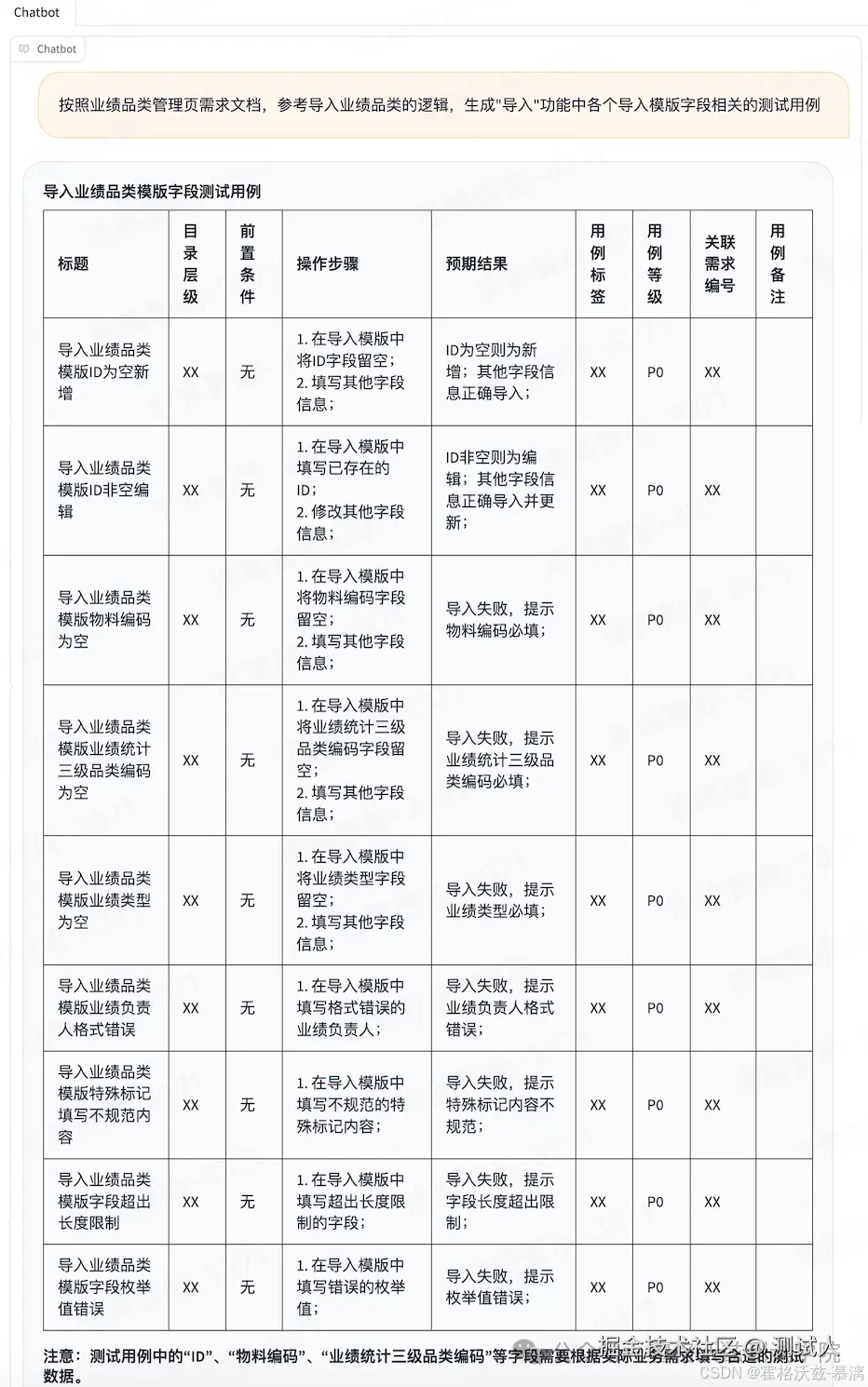 - 用例生成:用例的编写具备一定程度上的标准格式,例如固定的用例描述、前置条件、测试步骤、预期结果等,测试工程师可以使用RAG补充自己的业务需求描述以及用例生成维度(冒烟用例、边界值、异常值等),生成覆盖尽可能全面的测试用例