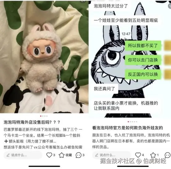 而在被寄予厚望的海外市场,泡泡玛特通过本地IP联名、本土化运作等模式打开了市场缺口,但在海外“杀疯了”的泡泡玛特,也一度被质疑服务跟不上。