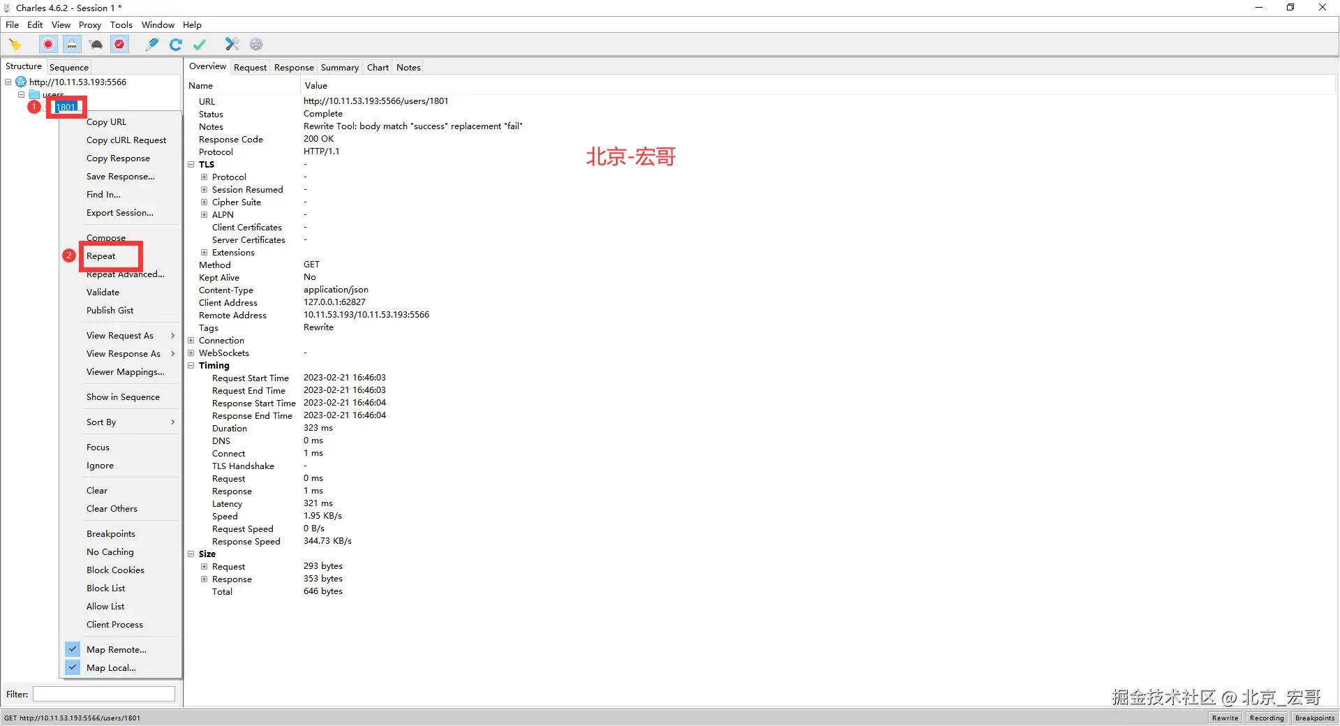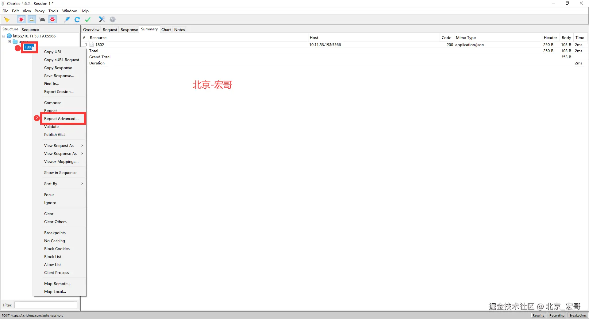 Repeat单次请求Charles有两种操作方式。具体操作方式如下: