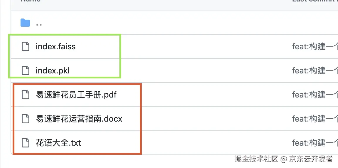 三个需要加载的文档, index.faiss和index.pkl是我已经做好向量化的文件,如果不想自己做向量化或者想省一些token,可以直接读取这两个文件。代码段如下: