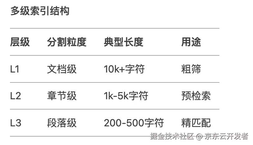除了采取上面的基本分割方式,然后还可以结合层次分割优化不同粒度的索引结构,提高检索匹配度。