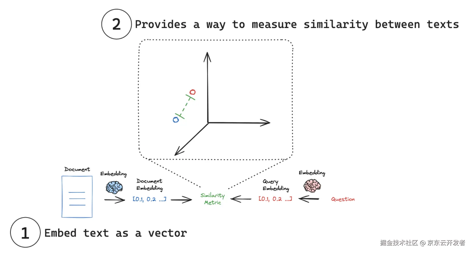 嵌入模型(embedding models) 是许多检索系统的核心。嵌入模型将人类语言转换为机器能够理解并快速准确比较的格式。这些模型以文本作为输入,生成一个固定长度的数字数组。嵌入使搜索系统不仅能够基于关键词匹配找到相关文档,还能够基于语义理解进行检索。主要应用之一是rag.