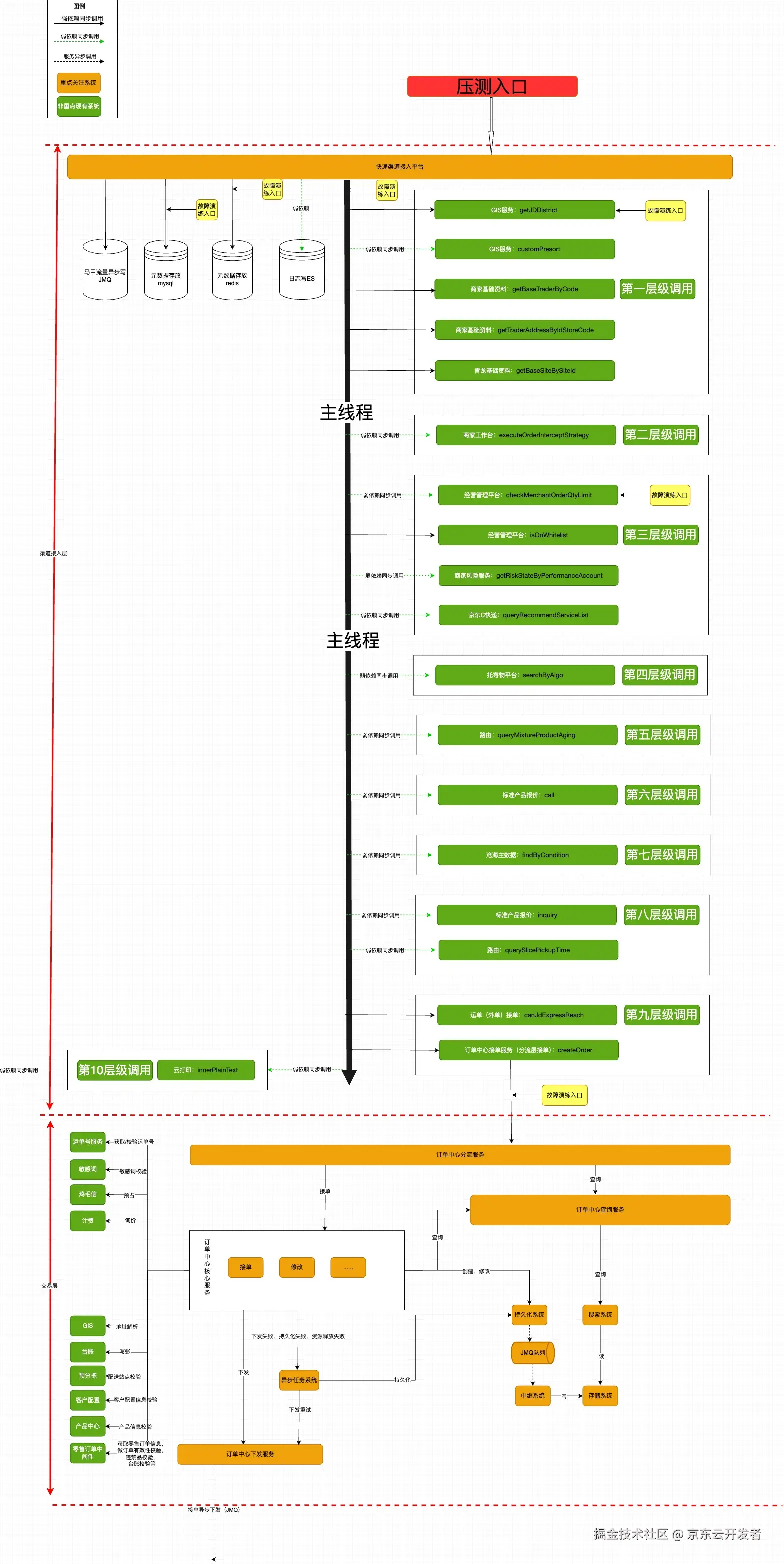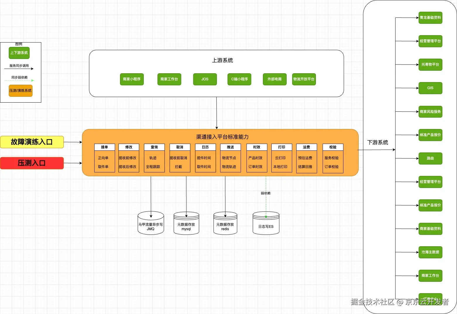 通过对核心系统的架构分析,梳理系统链路的关键指标(系统规模、SLA及限流指数等)和关键依赖(应用、存储及其他中间件),明确要进行实验的系统或服务范围,标记故障注入点。