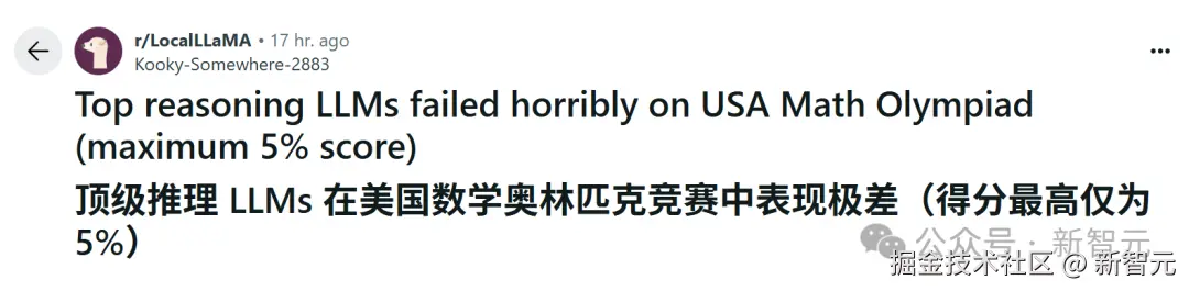 【新智元导读】在数学推理中,大语言模型存在根本性局限:在美国数学奥赛,顶级 AI 模型得分不足 5%!来自 ETH Zurich 等机构的 MathArena 团队,一下子推翻了 AI 会做数学题这个神话。