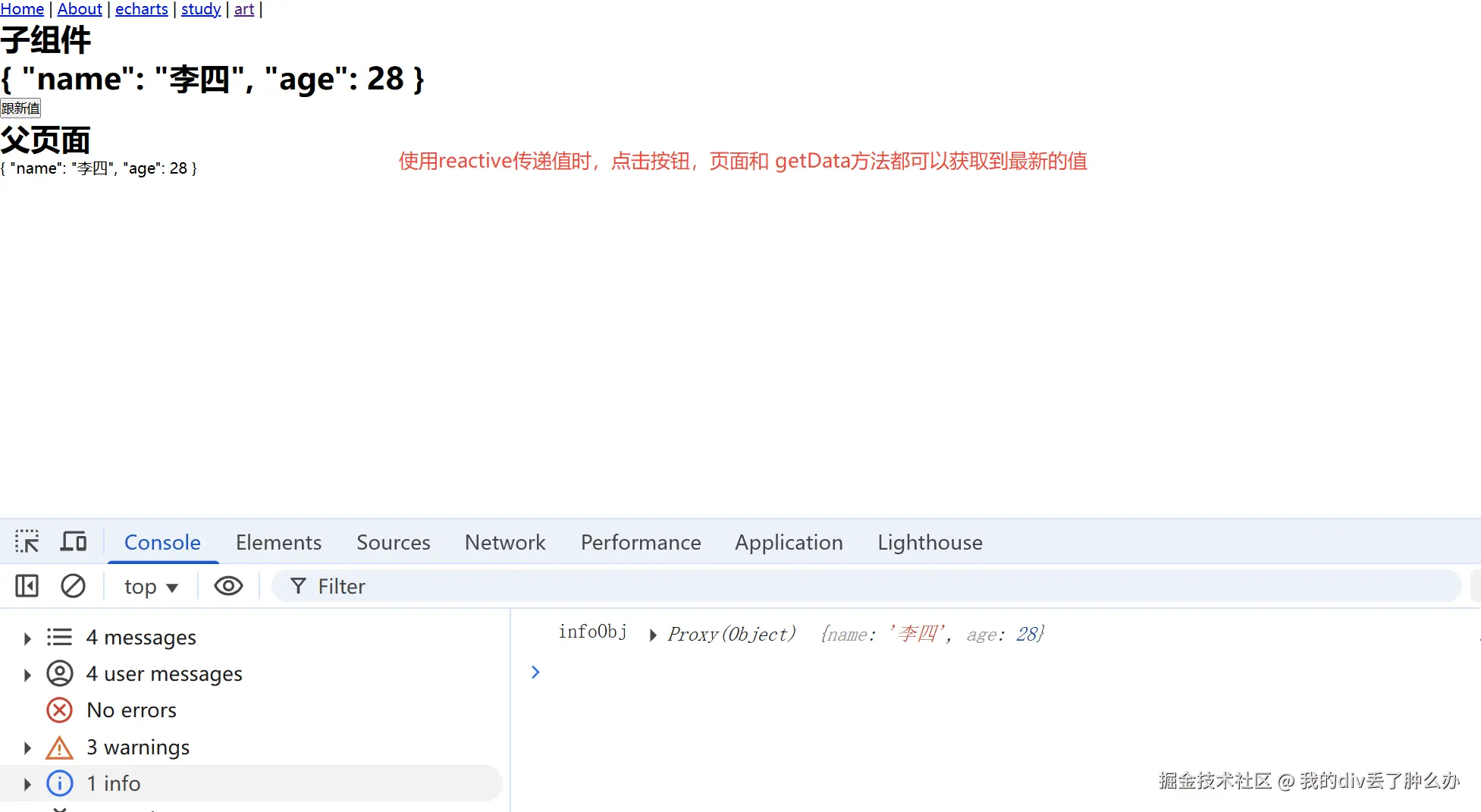 使用reactive父组件第二次传递给子组件的数据:方法中可以获取到最新数据