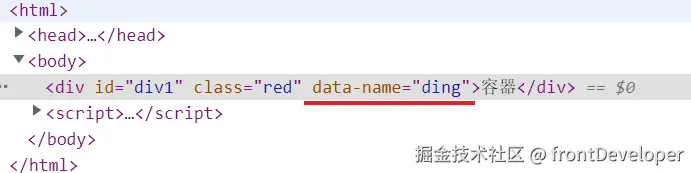 div1.setAttribute('data-name', 'ding'); // 自定义属性以 'date-' 开头