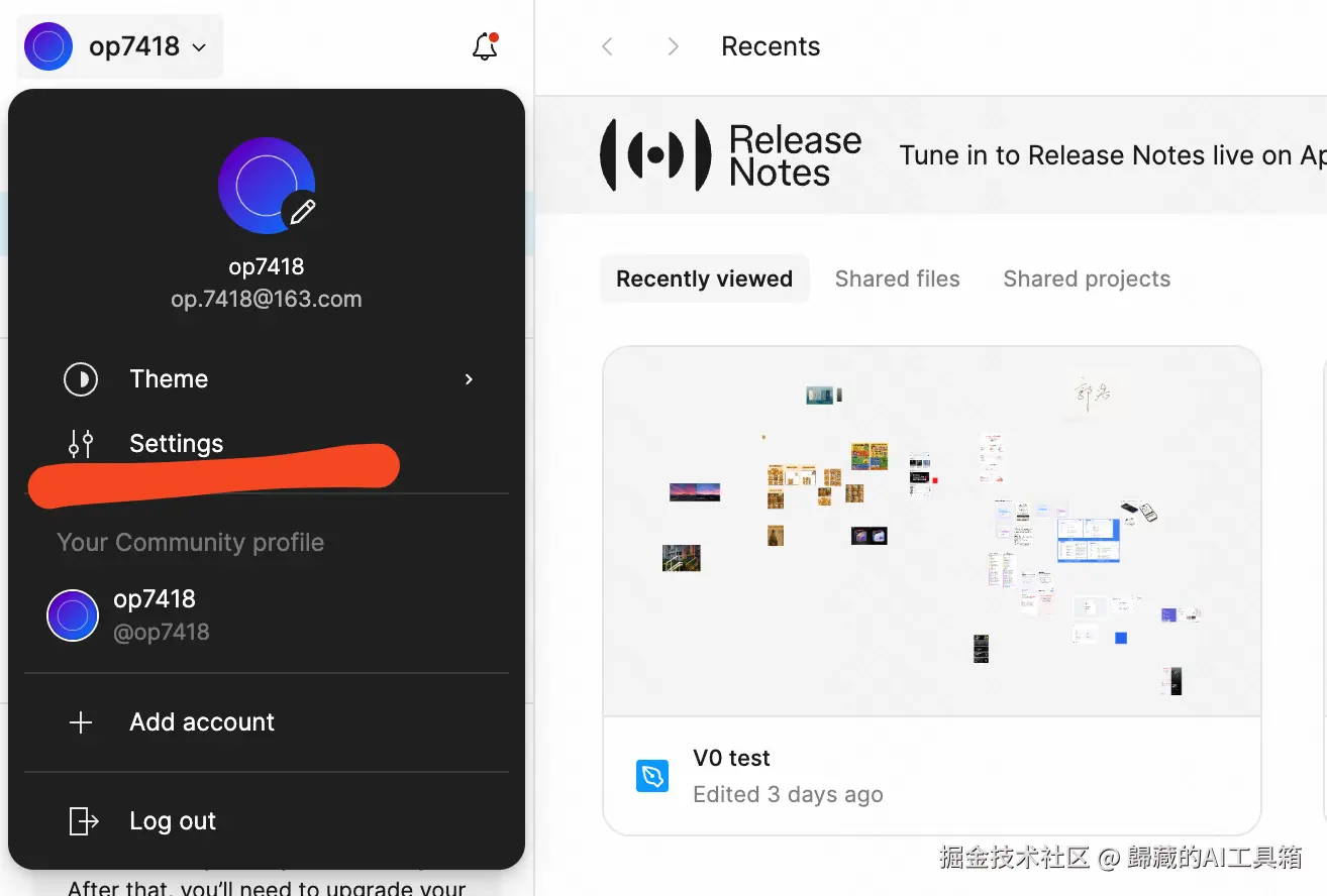 这里我们需要去Figma 软件里获取一下我们的API Token,具体的步骤是: