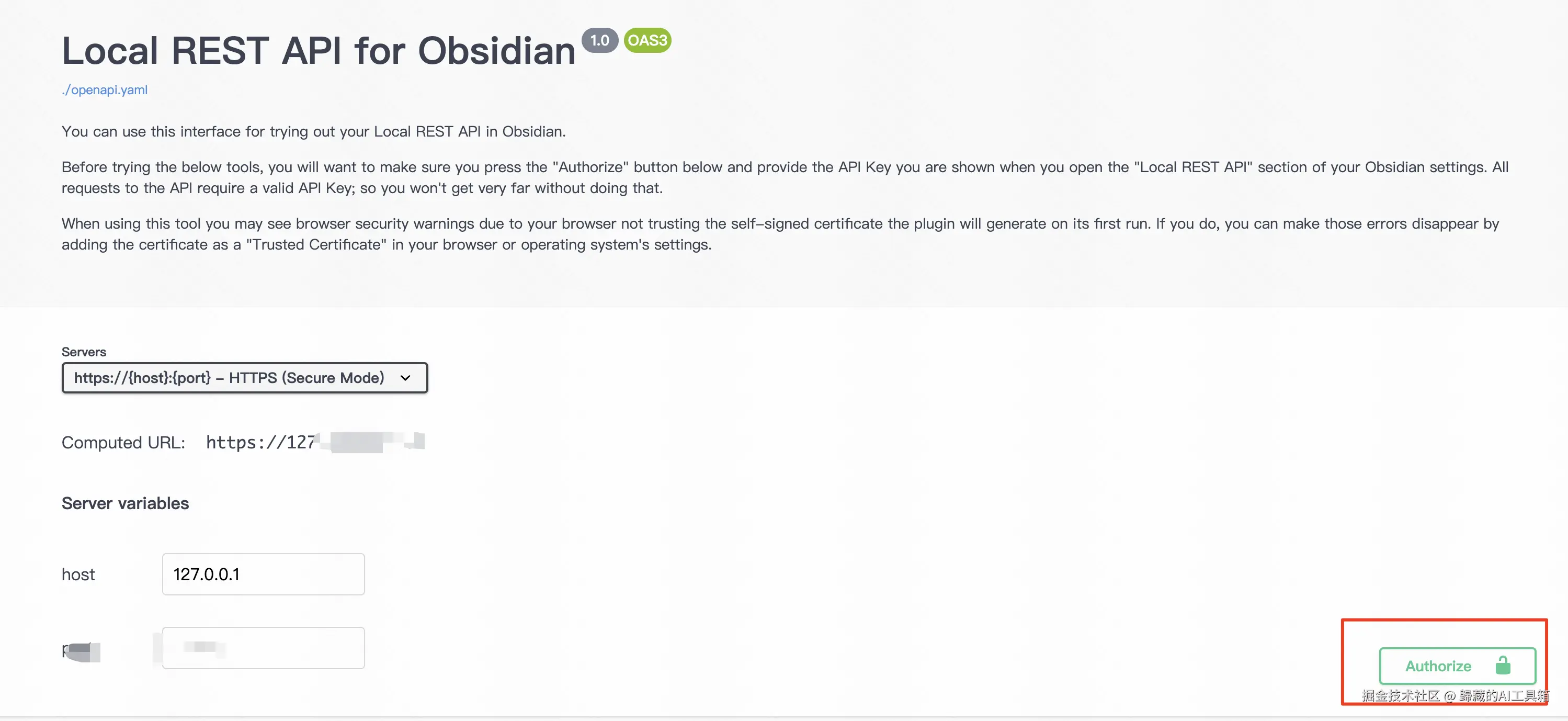 点击右下角的「Authorize」输入刚才的 API Key 启用服务就可以了。