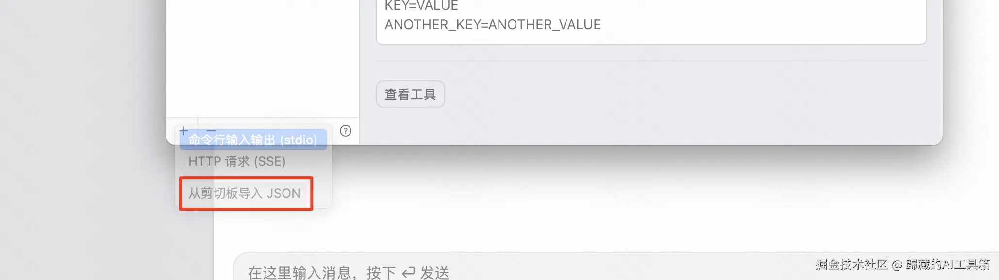 在新建的时候左下角加号点击后选择「从剪切板导入 Json」就可以直接导入你从 Windsurf 或者 MCP 网站复制来的 Json 了,省事很多朋友们。