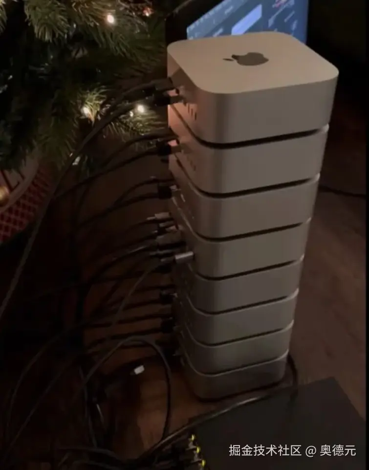 采用“强推理、弱训练”的硬件配置:如选择国产芯片、或者采购DeepSeek一体机、甚至是选择MacMini集群等,都是不错的选择。 这些硬件模型训练性能较弱,但推理能力强悍,对于一些不需要进行模型训练和微调、只需要推理(也就是对话)的场景来说,是个非常不错的选择。例如45万左右成本,就能购买能运行DeepSeek R1满血版模型的Mac Mini集群,相比购买英伟达显卡,能够节省很大一部分成本。但劣势在于Mac M系列芯片并不适合进行模型训练和微调。