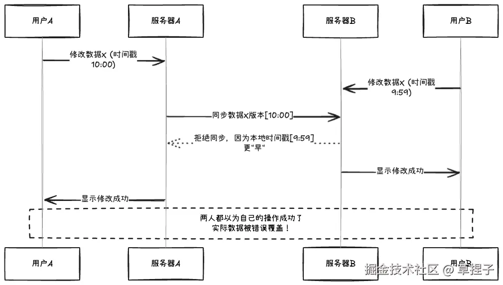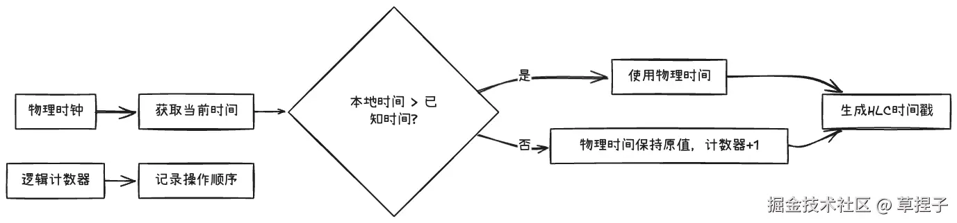 解决方法:采用混合逻辑时钟(HLC),结合物理时钟和逻辑计数。