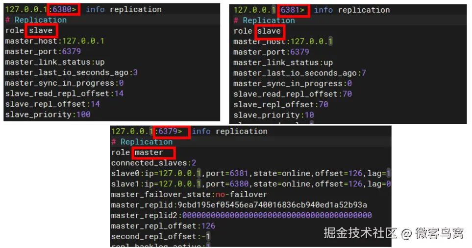 复制偏移量越高,说明从节点复制主节点的数据越完整,数据同步得越快。