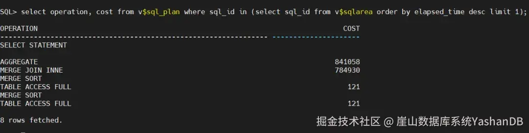 通过执行计划来分析数据库SQL性能是最常用,也是最重要的手段之一。执行计划上展示了查询的逻辑流程,包括表连接方式、聚合、排序、过滤等。这些信息对于诊断性能瓶颈、优化查询速度和提高资源利用率至关重要。YashanDB可以开启autotrace开关查看执行计划的详细信息,包括算子实际执行时间,算子执行时返回的结果集大小,评估的结果集大小,算子调用次数等。关于SQL语句应该选择何种计划,各算子的最优应用场景,可以阅读上一篇SQL优化系列文章《两个案例带你看懂YashanDB执行计划》进行深入了解。