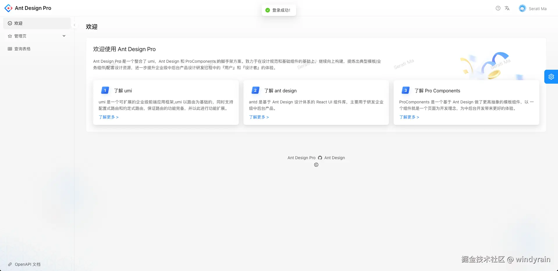 这里面有一些用不上的部分,包括但不限于 mock 数据,单元测试,Ant 相关Logo/提示信息,多语言,欢迎页,管理页。所以我们需要先把他删除掉。然后增添的一个基础的,可以增删改查的模块就ok了,大体思路参考下方代码,详细代码已MIT开源,可移步我的官方网站 wesug.cn 查看。