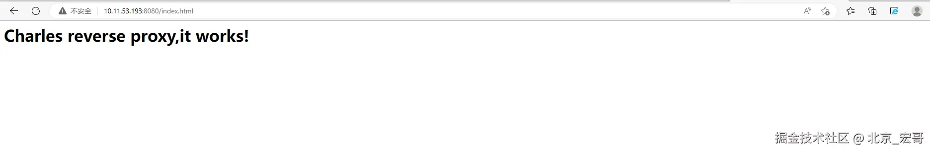 7.在任意一台计算机或者移动端上,通过**http://计算机B的IP:反向代理中设置的Loal Port端口/inde.html**,可以访问到HTML页面服务。本例中通过在浏览器或者移动端的服务器设置上输入**http://10.11.53.193:8080/index.html**访问,如下图所示: