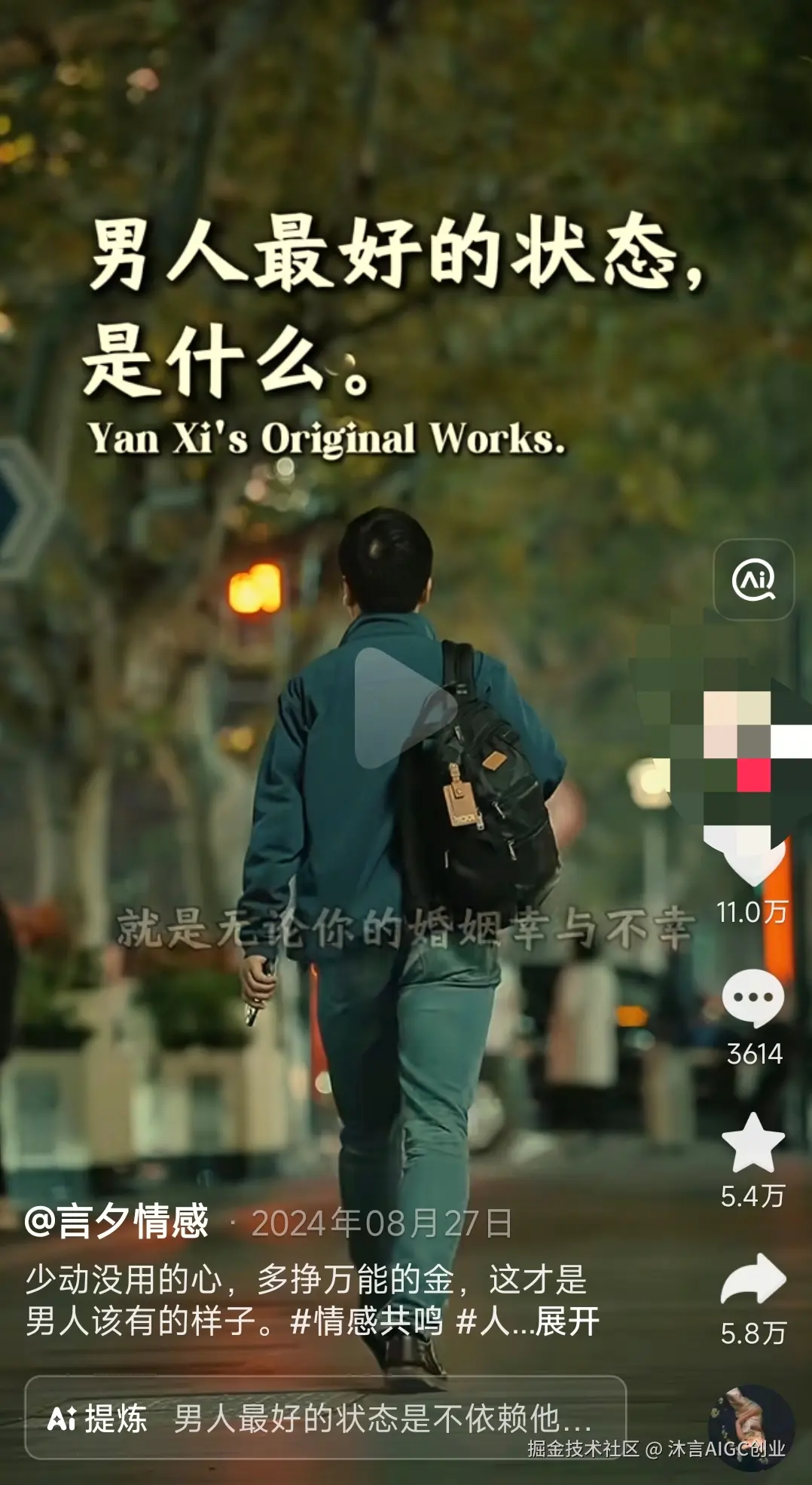 今天给大家拆解的,是近期爆火的暖心治愈类情感视频(如下图)。这类视频制作并不复杂——只需一个氛围感场景+走心文案+细腻配乐,就能瞬间击中观众内心,带来温暖治愈的力量。