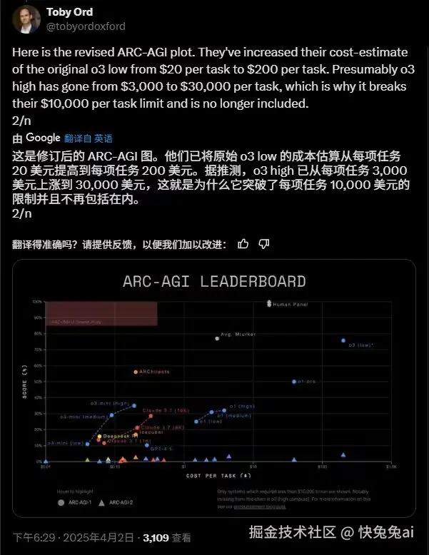 上周,负责运营和维护 ARC-AGI 的 Arc Prize Foundation 对 OpenAI 的 o3 “推理”人工智能模型在 ARC-AGI 基准测试中的费用预估进行了显著的调整,结果显示其运行费用并没有外界所期待的那样低廉。