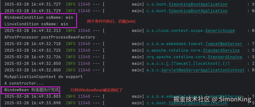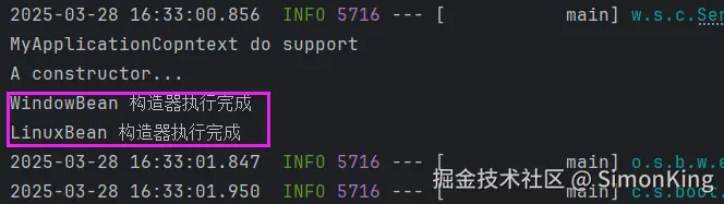 WindowBean在匹配WindowsCondition 逻辑的时候,实例化Bean。LinuxBean 在匹配LinuxCondition 逻辑的时候,才会实例化。