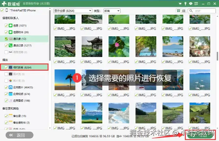 如果以上3种方法都无法找回你的照片,如何恢复删除的照片?那么是时候请出我们的终极武器了——数据蛙苹果恢复专家。该软件就像是拥有透视眼的侦探,能够深入你的iPhone内部,寻找那些被删除的照片。