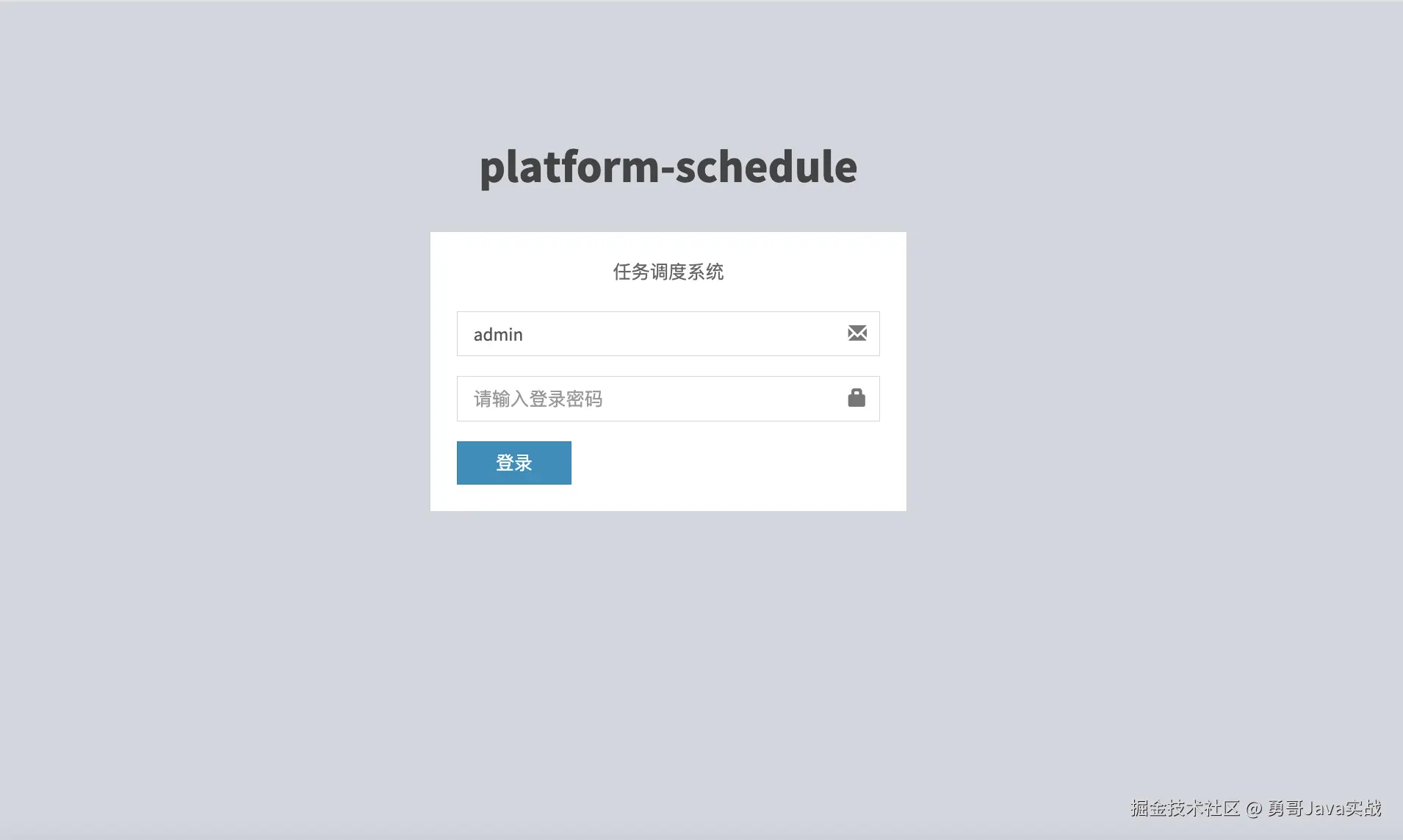 创建数据库 platform_schedule ,执行 doc 目录下的 SQL 脚本: