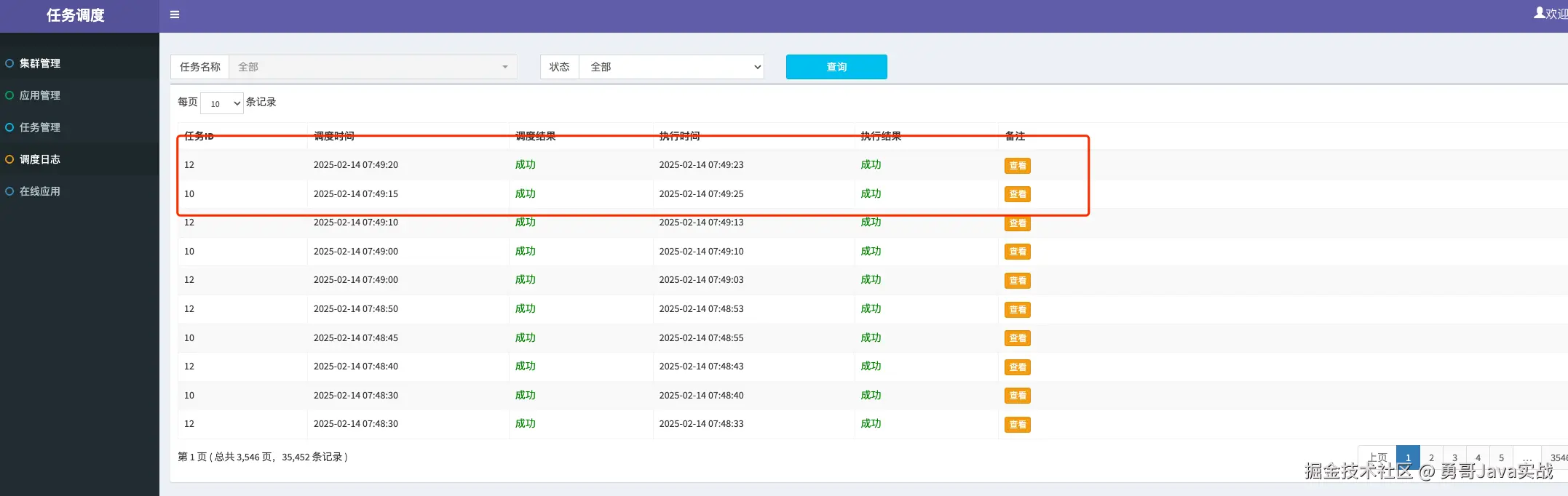 在 Admin 调度日志页面,查看日志: