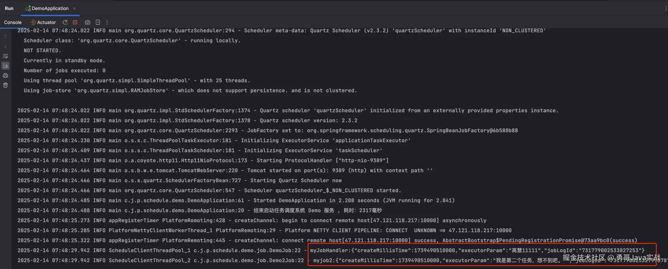 如图,每隔 15 秒,我们的控制台会打印执行日志。