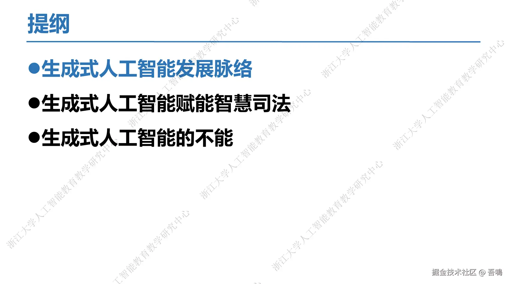 今天吾鳴要给大家分享的是浙江大学DeepSeek系列公开课第二季第三期的内容,报告主要的内容是讲解生成式AI如何赋能智慧司法,使得司法系统更加智能化,以便更好地服务大众。报告一共有64页PPT,完整版PPT+视频下载地址都放到了文末。