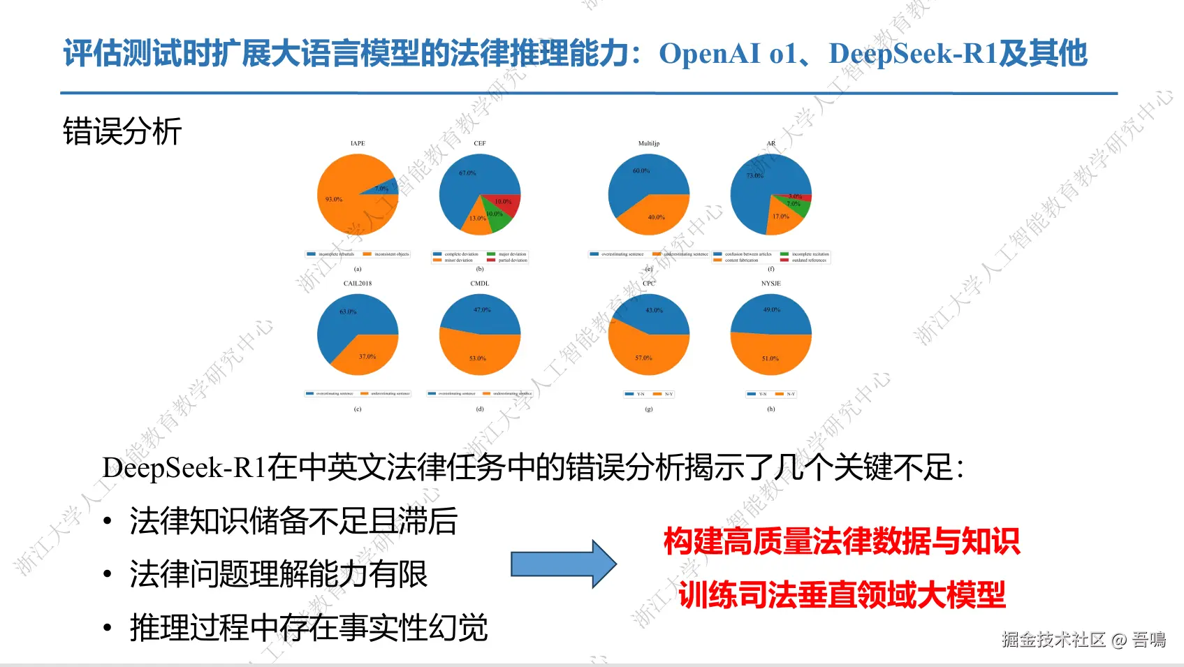 - 专业领域瓶颈:法律知识更新滞后、推理中的“幻觉”问题、政法场景思维链专业性不足。