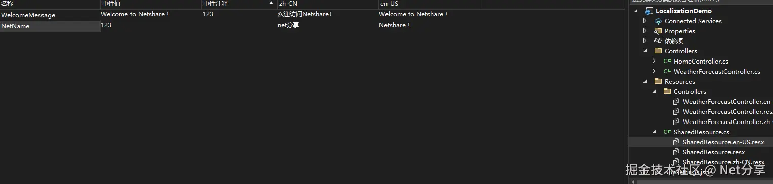 ASP.NET Core 提供了强大的本地化功能,通过灵活配置本地化服务和请求文化提供程序,可以轻松实现国际化支持。同时,支持自定义扩展和资源文件格式切换,满足不同开发场景的需求 欢迎关注我的公众号“Net分享”,技术文章第一时间推送,随缘更新 , 分享一些你可能注意不到的细节