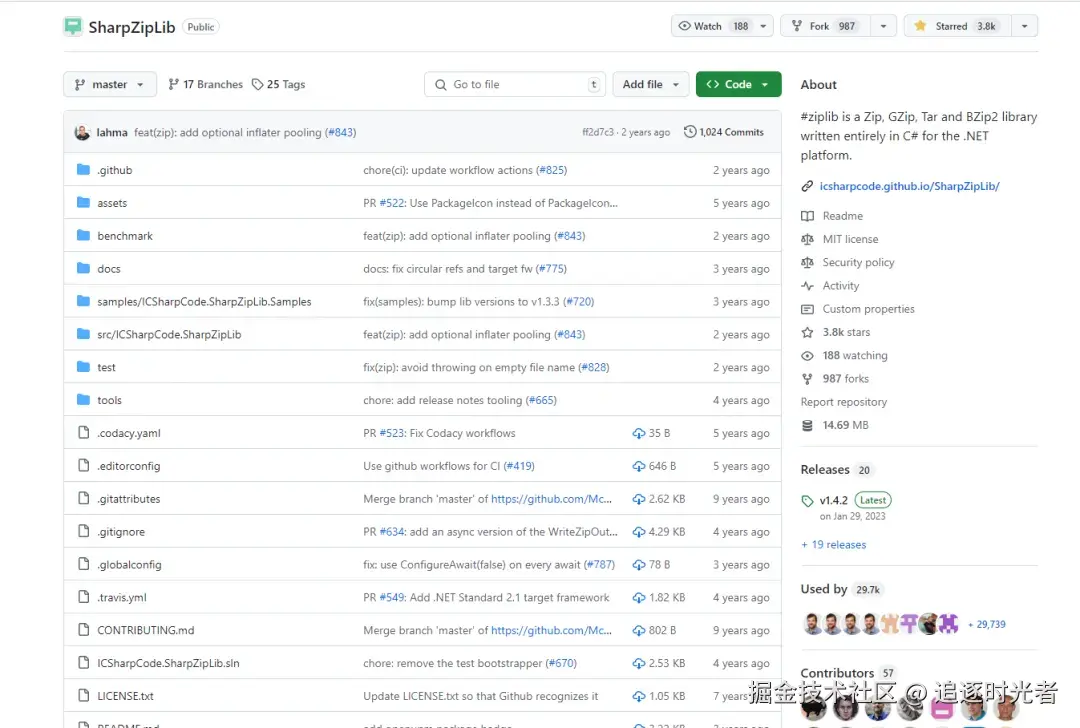 - 项目简介: SharpZipLib(以前称为 NZipLib)是一个完全用 C# 编写的压缩库,它支持使用存储和 deflate 压缩方法、PKZIP 2.0 样式和 AES 加密、带有 GNU 长文件扩展名的 tar、GZip、zlib 和 raw deflate 以及 BZip2 的 Zip 文件。支持 Zip64,当前尚不支持 Deflate64。它作为程序集实现(可安装在全局程序集缓存GAC中),因此可以很容易地合并到其他项目中(使用任何 .NET 语言)。