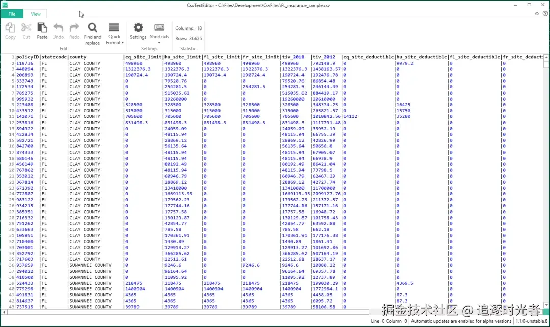 - 项目简介: CsvTextEditor是一个基于 C# 开源(MIT License)、免费、易于使用的 CSV 文本编辑器应用程序,使用 AvalonEdit 实现的弹性制表符 CSV 编辑器。