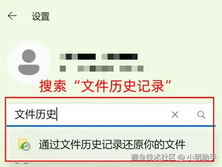 步骤1: 在电脑“设置”中搜索“文件历史记录”功能;