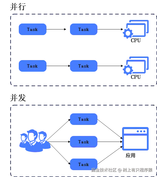 并发,是指一个系统能够同时处理多个任务或者请求,并且看起来好像这些任务是同时执行的。实际上,这些任务只是在最短时间内交替执行,因为计算机的处理速度非常快,例如在一个 CPU 上同时运行多个应用程序或是处理多个网络请求。