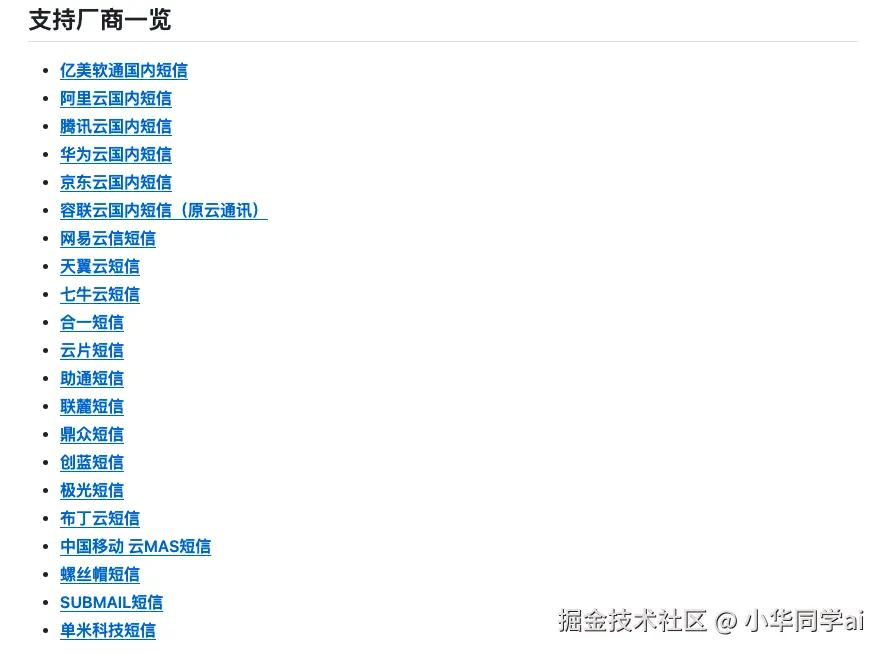 支持包括阿里云、华为云、京东云等21家服务商,更换服务商只需修改配置文件: