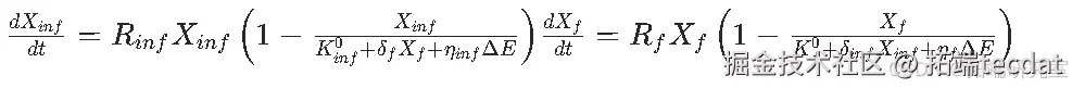 基于May(1976)的种群竞争模型,构建互联网金融(Xinf)与传统金融(Xf)的动态方程: