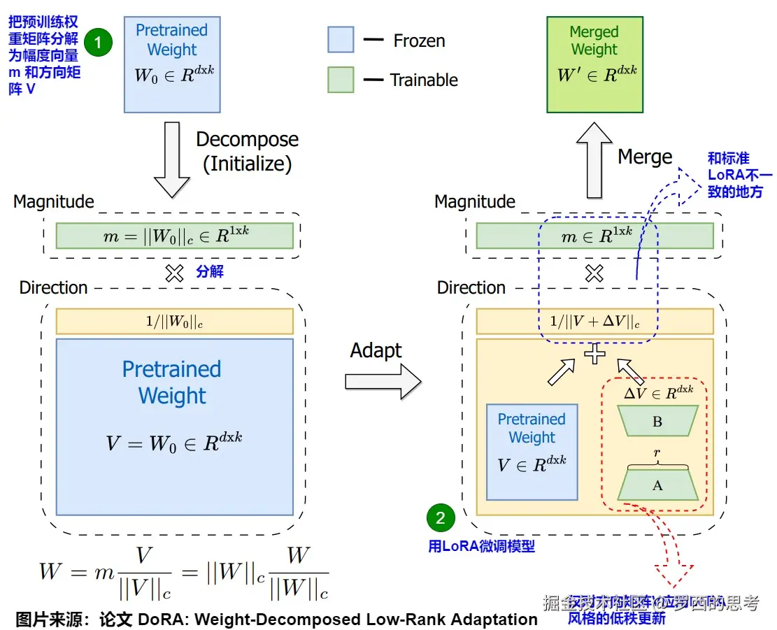 DoRA: Liu, S. Y., Wang, C. Y., Yin, H., Molchanov, P., Wang, Y. C. F., Cheng, K. T., & Chen, M. H. (). DoRA: Weight-Decomposed Low-Rank Adaptation. arXiv preprint arXiv:2402.09353.