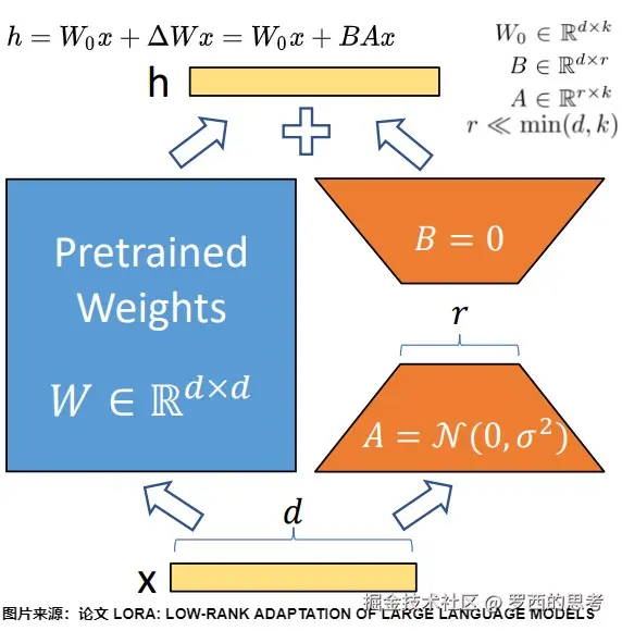 - 只有 A 和 B 是需要更新的训练参数,会针对特定任务进行调整。训练时的更新可表示为:。其中秩。