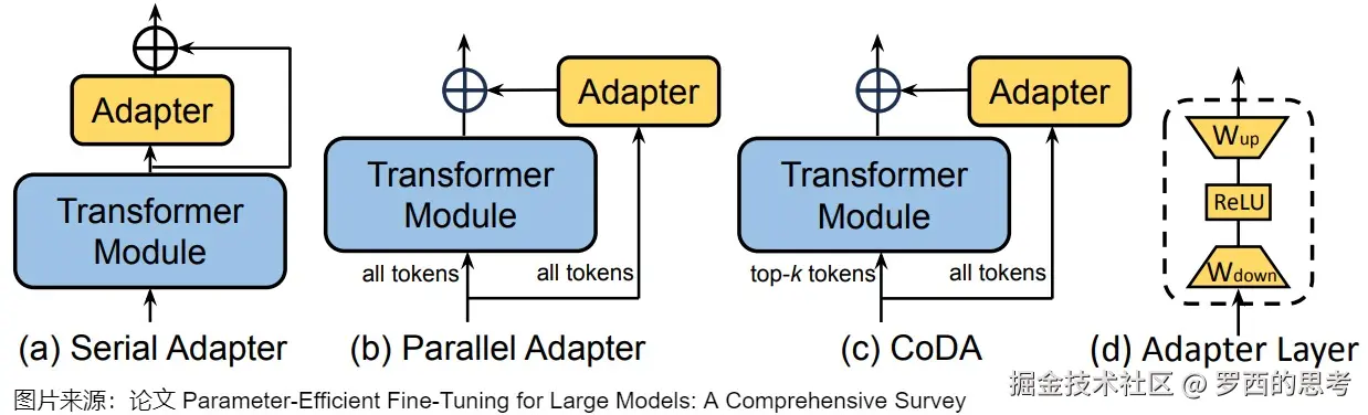 - 可加性PEFT,通过注入新的可训练模块或参数来修改模型架构;