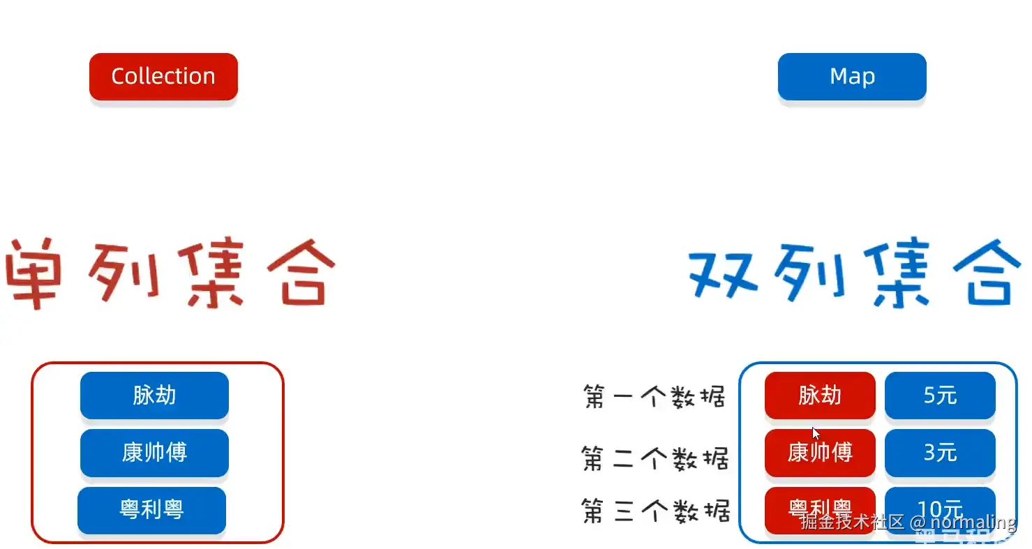 双列集合:在添加数据的时候每次可以添加两个数据的集合