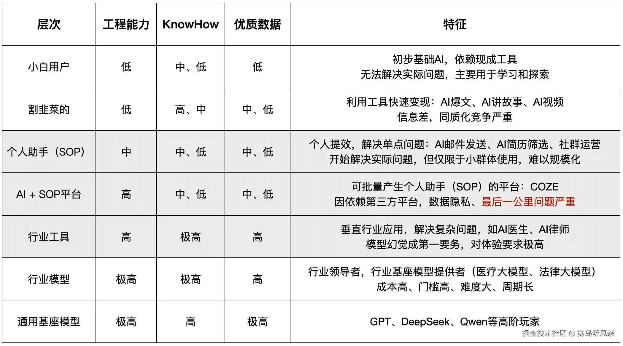 类似于DeepSeek、GPT、GLM、文心、千问等做底层模型的团队,区别于之前,他们不仅是需要各种优质数据还需要真的深入模型底层技术去探索,而前六级是不需要的。